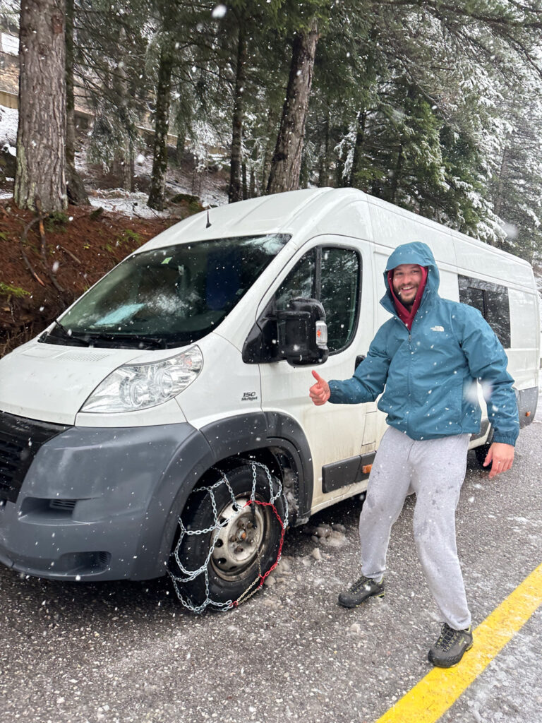 Po „wellness“ Vánocích v Thermopilaes bylo na plánu prozkoumat hory a místní skiresorty, protože skialpy, vezeme i do Řecka sebou. Předpověď,vypadá, že by sněhu v horách měla přát. Tak balíme plavky, připravujeme thermo-prádlo, oteplováky a vyrážíme směr vrcholky. Plán je vyjet na parkoviště skiresortu Parnassos, který je pod stejnojmenou horou Parnassus (2457 m.n.m), Drápeme se nahoru úzkými silnicemi a uličkami vesničky Arachova. Celou cestou nás doprovází déšť, který se se zvyšující nadmořskou výškou, mění na sníh. Najednou se otáčky motoru zvyšují, kola se točí, ale my stojíme. Jak se říká štěstí přeje připraveným, takže vytahujeme sněhové řetězy, které naštěstí řeší náš problém A jede se dál.
